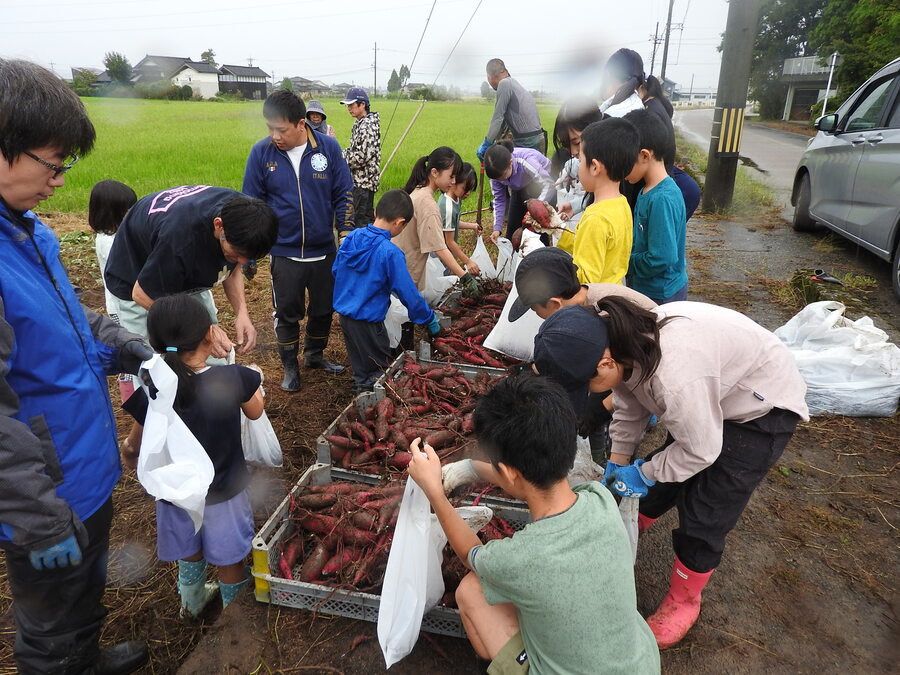 春に苗を植えたサツマイモの収穫をしました。